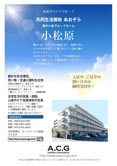 「共同生活援助あおぞら上塩屋」「共同生活援助あおぞら小松原」よろしくお願い致します!あおぞらケアグループ広報部2020年1月29日読了時間: 1分令和2年1月、「共同生活援助あおぞら上塩屋」「共同生活援助あおぞら小松原」2拠点同時オープンいたしました! 市電電停も近く、交通アクセスのいい立地でございます。買い物も近所にスーパー、コンビニがあり、とても便利な場所です。よろしくお願いいたします!